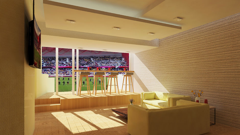 En este proyecto se diseño el interior de los palcos privados ubicados dentro de los 4 macro apoyos, en el Estadio Nemesio Diez.